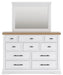 | Details | B844B4: Includes panel headboard, storage footboard, rails and roll slats, Footboard made with hardwood solids, MDF substrates and butcher block oak veneer, Headboard and rails made with hardwood solids and MDF substrates, White finish, Headboard with inset black metal barn sash, 2 drawers in footboard with fully finished interior, dovetail construction and ball-bearing side glides, Pulls with matte black finish, Bed does not require a foundation/box spring, Mattress available, sold separately, Assembly required, B844B1: Includes dresser and mirror, Made with hardwood solids, MDF substrates and butcher block oak veneer, Dresser with 2-tone finish (white finish; butcher block oak veneer with natural finish), Pulls with matte black finish, 10 spacious drawers with fully finished interiors (top drawers felt lined), dovetail construction and ball-bearing side glides , Drawers with inset picture fronts, Mirror attaches to back of dresser, B844-93: Made with hardwood solids, MDF substrates and butcher block oak veneer, 2-tone finish (white finish; butcher block oak veneer with natural finish), Pulls with matte black finish, 3 spacious drawers with fully finished interiors (top drawers felt lined), dovetail construction and ball-bearing side glides, 110V power supply with dual USB charging ports, Power cord included; UL Listed, Drawers with inset picture frame fronts, | |