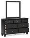 | Details | B687B6: Includes queen panel headboard, footboard and rails, Made with hardwood solids, birch veneer and MDF substrate, Black painted finish, Thick profiled tops, Tapered feet, Foundation/box spring required, sold separately, Mattress available, sold separately, Assembly required, Bed is compatible with an adjustable base, B687B1: Includes dresser and mirror, Made with hardwood solids, birch veneer and MDF substrate, Black painted finish, 7 smooth-gliding drawers with dovetail construction and ball-bearing side glides, Round metal drawer knobs with satin nickel-tone finish, Framed drawer fronts, Tapered feet, Mirror attaches to back of dresser, Assembly required, B687-92: Made with hardwood solids, birch veneer and MDF substrate, Black painted finish, 2 smooth-gliding drawers with dovetail construction and ball-bearing side glides, Round metal drawer knobs with satin nickel-tone finish, Framed drawer fronts, Tapered feet, | |