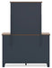 | Details | B414B3: Includes panel headboard, footboard, rails and slats, Made with hardwood solids, mindi wood veneer and MDF substrates, Two-tone finish features a dark slate blue with a light brown wood-tone top, Foundation/box spring required, sold separately, Mattress available, sold separately, Assembly required, B414B1: Includes dresser and mirror, Made with hardwood solids, mindi wood veneer and MDF substrates, Two-tone finish features a dark slate blue with light brown wood-tone top, Nickel-tone metal knobs, 6 drawers with fully finished interior, dovetail construction and heavy duty ball-bearing side glides, Mirror attaches to back of dresser, B414-45: Made with hardwood solids, mindi wood veneer and MDF substrates, Two-tone finish features a dark slate blue with a light brown wood-tone top, Nickel-tone metal knobs, 4 drawers with fully finished interior, dovetail construction and heavy duty ball-bearing side glides, B414-92: Made with hardwood solids, mindi wood veneer and MDF substrates, Two-tone finish features a dark slate blue with a light brown wood-tone top, Nickel-tone metal knobs, 2 drawers with fully finished interior, dovetail construction and heavy duty ball-bearing side glides, | |