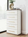 Looking to make a subtly striking statement in your bedroom? We've got you covered. This chest of drawers' sophisticated two-tone treatment marries a warm brown finish over replicated walnut grain with a matte white finish. Rounded corners and a thick top radiate an air of modern panache, while sleek handles in a champagne finish add a sparkling touch to the spacious drawers. It’s a master class in contemporary yet comfortable character.