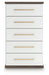 | Details | Made with engineered wood (MDF/particleboard/plywood) and decorative laminate for the right balance of affordability and durability, Two-tone finish (dark brown finish over replicated walnut grain; matte white finish), Decorative laminate replicates natural or man-made material surfaces with consistent color, pattern and texture, Handles with champagne finish, 5 smooth-gliding drawers, Drawer interiors are lined with a faux linen laminate for a clean, finished look, Safety is a top priority, clothing storage units are designed to meet the most current standard for stability, ASTM F 2057 (ASTM International), Drawers extend out to accommodate maximum access to drawer interior while maintaining safety, Minor assembly required | |