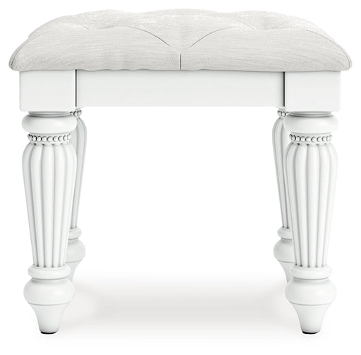 Signature Design by Ashley®Fit for a princess. This vanity stool’s crisp matte white finish pairs with charming elements like turned legs, ornate beading and sumptuous button...