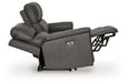 Details Dual-sided recliner; middle seat remains stationary, One-touch power control with adjustable positions, Easy View™ adjustable headrest and zero-draw USB-A and USB-C ports, Zero-draw technology only consumes power when the USB receptacle is in use, Zero-gravity mechanism allows optimum reclining comfort with infinite reclining positions at the touch of a button, Corner-blocked frame with metal reinforced seat; attached back and seat cushions, High-quality foam cushions wrapped in poly fiber, 100% top grain leather covers inside areas such as the back, seat and arm cushions; skillfully matched faux leather covers the remaining areas, Due to its natural origin, real leather can show individual characteristics such as healed scars, growth marks, grain variation and shade variation, Natural variations make each hide unique and do not detract from the wearing qualities of leather, Zero wall recliner design requires minimal space between wall and chair back, Zero gap mechanism maintains consistent lower back and lumbar support throughout every stage of reclining for the ultimate relaxation experience, Power cord included; UL Listed