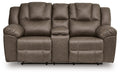 Ready to find your new favorite spot to unwind? This reclining loveseat with console is designed for maximum indulgence, with plush, pillowy cushions that provide wonderful support. Wrapped in supple yet durable faux leather that’s easy to clean, it's just the ticket for movie nights and everyday life. And with one easy pull, you’re on your way to endless relaxation. Talk about the perfect blend of sink-in comfort and inviting contemporary style.