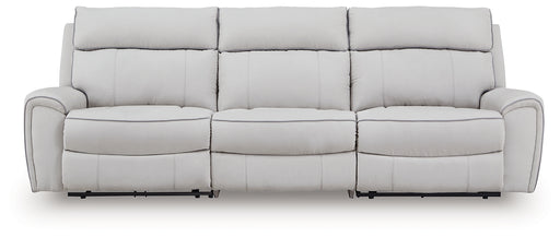 Signature Design by Ashley®Expansive and elegant, this power reclining sofa makes a sizable style statement. Its large scale enhances the luxe look and magnifies the beauty o...