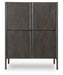 Making a strong contemporary style statement, this accent cabinet transforms storage into a work of art. Rounded flare vertical edges and a rich espresso finish add to its on-trend appeal. Push magnet doors open to reveal six shelves loaded with possibilities. How's that for form and function?
