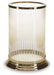 | Details | Made with metal and light amber carved glass, Brass-tone finish, Holds 1 pillar candle up to 3" (not included) | |