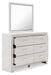 | Details | Made of engineered wood (MDF/particleboard) and decorative laminate, Light finish with subtle pearl effect over replicated cedar grain with authentic touch, Large scale chrome-tone handles with mosaic details, Faceted chrome-tone accents, Six smooth-gliding drawers with faux linen lining, Mirror attaches to back of dresser, Safety is a top priority, clothing storage units are designed to meet the most current standard for stability, ASTM F 2057 (ASTM International), Drawers extend out to accommodate maximum access to drawer interior while maintaining safety, Assembly required | |