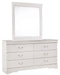 This dresser and mirror set's crisp cottage white gives traditional Louis Philippe profiling a delightful style awakening. The look is timeless. The fee?l Right at home. Six smooth-gliding drawers with antiqued bail pulls beautifully accommodate.