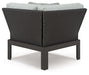 | Details | Includes 5 modular pieces: 2 armless chairs, corner chair and ottoman, Made with aluminum and resin wicker, Black finish, All-weather foam cushion core wrapped in soft polyester, Zippered cushions and throw pillows covered in solution-dyed high-performance fabric, Nuvella+™ is an outdoor fabric that can be cleaned and offers enhanced UV resistance, Clean fabric with mild soap and water, let air dry; for stubborn stains, use a solution of 4 oz. bleach to 28 oz. water, Stainless steel hardware, Designed to withstand the harsh elements of the outdoors, 3 throw pillows included, Assembly required | |