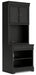| Details | Includes bookcase base and door hutch, Made with solid wood frames, elm veneer and MDF substrate, Vintage black finish, Hardware with pewter-tone finish, Base with 1 drawer and 1 shelf, Door hutch with 2-door cabinet, Hutch has LED light under shelf, Power cord included; UL Listed, Assembly required | |