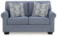 This loveseat is defined by comfort, convenience and classic style. Soft to the touch and stain-resistant, the Next-Gen Nuvella™ fabric is easy to maintain. And you'll love the universal appeal of its denim-inspired hue. With roll arms adding a dash of traditional flair, the loveseat is a simply chic approach to everyday relaxation.