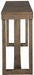 This designer sofa table masters the art of simplicity. Bold, blocky profile is enriched with plank-effect styling and a textured grayish brown finish for a look that’s cool and contemporary and a vibe that’s warm and inviting.