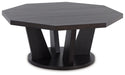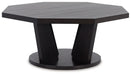 For the ultimate in casual contemporary styling, accent your sofa or loveseat with this chic coffee table. Designed with an octagonal top and trapezoid-shaped legs, its geometric elements create a bold, eye-catching look.