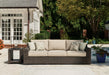 Who says the great outdoors isn’t made for luxury living? This sofa with cushion offers all the high-end design, plush comfort and durability you could ask for, and then some. Its all-weather, rust-proof aluminum frame provides the easy-breezy wicker look you love without the high maintenance. Rest assured, the high-performing Nuvella® fabric covering the cushions and throw pillows is made to stand up to the elements.
