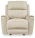 Focus on function. This practical power recliner balances contemporary character and irresistible comfort. Its affordable, expertly matched leather and faux leather upholstery keeps your style up to speed without breaking the bank. Reclining at the touch of a button, the recliner plays well in relaxed, luxe seating areas made for quality time.
