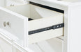 | Details | Made with hardwood solids and MDF substrate, White painted finish, Tapered feet, Framed drawer fronts, 7 smooth-gliding drawers with dovetail construction and ball-bearing side glides, Round metal knobs with satin nickel-tone finish | |