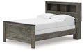 Details Includes bookcase headboard, panel footboard and panel rails, Made with engineered wood (MDF/particleboard/plywood) and decorative laminate for the right balance of affordability and durability, Rustic warm gray finish over replicated oak grain with authentic touch, Decorative laminate replicates natural or man-made material surfaces with consistent color, pattern and texture, 3 storage cubbies, Foundation/box spring required, sold separately, Mattress available, sold separately, Assembly required