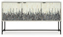 Looking for a showstopping accent for your home? This accent cabinet combines fashion and function in an exclusive way. It offers a creative take on a traditional cabinet, with a strip pattern in white, gray and black. Inside the doors, two shelves suit all your storage needs. Redefine your modern decor with this one-of-a-kind piece.