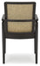 | Details | Made with wood, Aged black finish with rubbed-through edges, Inset synthetic cane backrest, Textural woven polyester upholstery, Cushioned seat, Assembly required | |