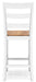 Complement your home’s simply relaxed sensibility with this counter height bar stool. A crisp white hue offers a chic contrast to the natural wood tone, for a neutral look that vibes with a variety of aesthetics. Its hard, contoured seat design prioritizes both cleanability and comfort. Whether you're sipping your morning coffee, settling in for dinner or working from home, this stool is smartly designed for everyday comfort and style.