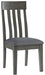 | Details | Made with solid wood, Antiqued gray finish, Upholstered in gray textural polyester fabric, Cushioned foam seat, Contoured comb-back design, Assembly required | |