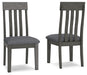 Cool and on-trend. This upholstered dining chair sports a two-tone gray look for a contemporary-yet-casual feel. The cushioned foam seat in a gray textural fabric pairs seamlessly with the antiqued gray finish, while the contoured comb-back design adds a dash of geometric flair. With this chic seat, it’s easy to dine in style.