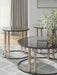| Details | Includes coffee table and 2 end tables, Made with tubular metal legs and frame, Legs with goldtone finish, Frame with matte black finish, Tempered black glass top | |