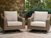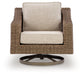 Details All-weather resin wicker handwoven over rust-resistant aluminum frame with durable powder coated finish, Solution-dyed high-performance fabric, Nuvella is an outdoor fabric that can be cleaned and offers UV resistance, Clean fabric with mild soap and water, let air dry; for stubborn stains, use a solution of 4 oz. bleach to 28 oz. water, Stainless steel hardware, Designed to withstand the harsh elements of the outdoors, 360-degree swivel, Assembly required