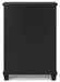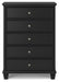 | Details | Made with hardwood solids, birch veneer and MDF substrate, Black painted finish, 5 smooth-gliding drawers with dovetail construction and ball-bearing side glides, Round metal drawer knobs with satin nickel-tone finish, Framed drawer fronts, Tapered feet | |