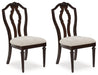| Details | Made with solid wood frames and cast resin components, Cherry brown finish, Polyester upholstery, Cushioned seat, Includes adjustable levelers, Assembly required | |