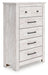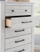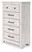 | Details | Made with engineered wood (MDF/particleboard/plywood) and decorative laminate for the right balance of affordability and durability, Whitewash replicated worn through paint over replicated wood grain with authentic touch, Decorative laminate replicates natural or man-made material surfaces with consistent color, pattern and texture, Hardware with dark bronze-tone finish, 5 smooth-gliding drawers, Safety is a top priority, clothing storage units are designed to meet the most current standard for stability, ASTM F 2057 (ASTM International), Drawers extend out to accommodate maximum access to drawer interior while maintaining safety, Minor assembly required | |