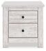 | Details | Made with engineered wood (MDF/particleboard/plywood) and decorative laminate for the right balance of affordability and durability, Whitewash replicated worn through paint over replicated wood grain with authentic touch, Decorative laminate replicates natural or man-made material surfaces with consistent color, pattern and texture, Hardware with dark bronze-tone finish, 2 smooth-gliding drawers, 2 slim-profile USB charging ports, Power cord included; UL Listed, Minor assembly required | |