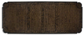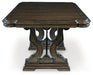 | Details | Made with hardwood solids, oak and ash swirl veneers, MDF substrates and cast resin components, Dark brown finish, Double pedestal base, Removable center leaf, Table extends by pulling both ends and dropping in leaf, Shaped metal stretcher bar, Dining chairs sold separately, Seats up to 8, Assembly required | |