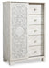 A one-of-a-kind girl deserves a bedroom retreat that celebrates her personal flair—and this boho-chic chest of drawers is so befitting. Wowing with an artful, carved-effect sliding door and richly distressed whitewash finish, this five-drawer chest with additional shelved storage is packed with possibilities.