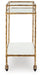 | Details | Made with sand casted aluminum, Antiqued brass-tone finish, White marble lower shelf, Clear glass top shelf, Casters for mobility, Color variations, fissures, mineral deposits and veining in the marble shelf are naturally formed characteristics, Assembly required | |