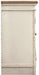Elevating the art of traditional cottage styling, this TV stand with fireplace option is beautifully in tune with your taste. Antiqued two-tone aesthetic blends a chipped white with a distressed wood tone top for added charm. Cabinet doors’ decorative fretwork over mirrored glass adds a lovely twist. Compatible with W100-121 fireplace insert (sold separately).