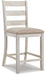 This upholstered bar stool invites you to raise the bar on small space living. An inspired choice for coastal chic or modern farmhouse settings, this comfortably cushioned bar stool with classic ladderback styling sports a grayish white finish with rub through effect for timeworn appeal.