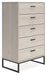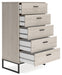 Light and bright, this chest of drawers is inspired by chic design. A light natural finish over replicated oak grain offers an authentic touch to this so-cool piece. It beautifully blends the hues of natural living with the edginess of your modern lifestyle.