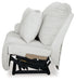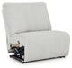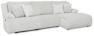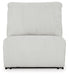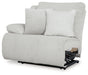 Details Includes 3 pieces: left-arm facing recliner, armless recliner and right-arm facing press back chaise, "Left-arm" and "right-arm" describe the position of the arm when you face the piece, Chaise with press-back reclining motion, Recliners with pull tab reclining motion, Corner-blocked frame with metal reinforced seat, Attached cushions, High-quality foam cushions wrapped in poly fiber, Accent pillows included, Pillows with soft polyfill, Polyester upholstery