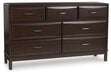 A rich, metropolitan finish. Unbeatable function. With this dresser, it’s a breeze to create a casual contemporary hideaway full of style and convenience. It combines thoughtful craftsmanship and handy storage, with smooth-gliding drawers to help keep clothes and linens organized. Metal bar pulls complete the look with added flair.