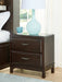 A rich, metropolitan finish. Unbeatable function. With this nightstand, it’s a breeze to create a casual contemporary hideaway full of style and convenience. It combines thoughtful craftsmanship and handy storage, with smooth-gliding drawers to help keep bedside essentials organized. Metal bar pulls complete the look with added flair.