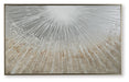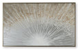 Brighten up your decor with this wall art. Its abstract design recalls the beauty of sunbeams peeking through the clouds, with gleaming metallic foil embellishments for added flair. A coordinating champagne-colored frame beautifully completes the piece.