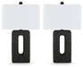 These sculptural table lamps are an enlightening choice for those with an eye for clean-lined, modern design. The textured cutout base and sleek rectangular shade elevate them to an art form. Place these accent lamps on a console table for a touch of chic refinement.