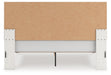 | Details | Includes upholstered panel headboard, panel footboard, platform rails and roll slats, Made with engineered wood (MDF/particleboard/plywood) and decorative laminate for the right balance of affordability and durability , Matte white finish with subtle replicated wood grain , Decorative laminate replicates natural or man-made material surfaces with consistent color, pattern and texture , Polyester upholstery , Chrome-tone and glitter accents, Bed does not require additional foundation/box spring; accommodates most zero clearance adjustable bases, Mattress available, sold separately, Minor assembly required | |